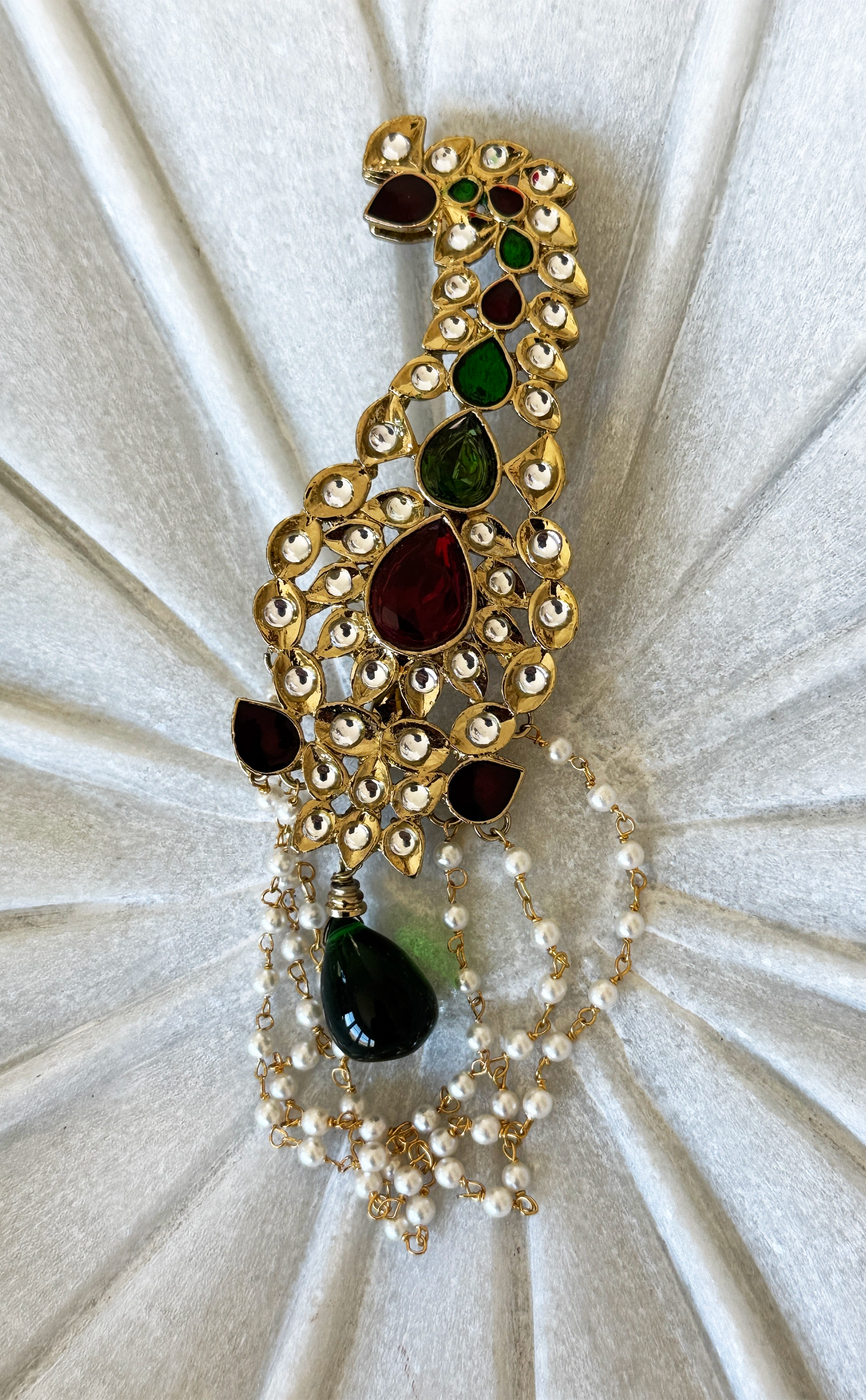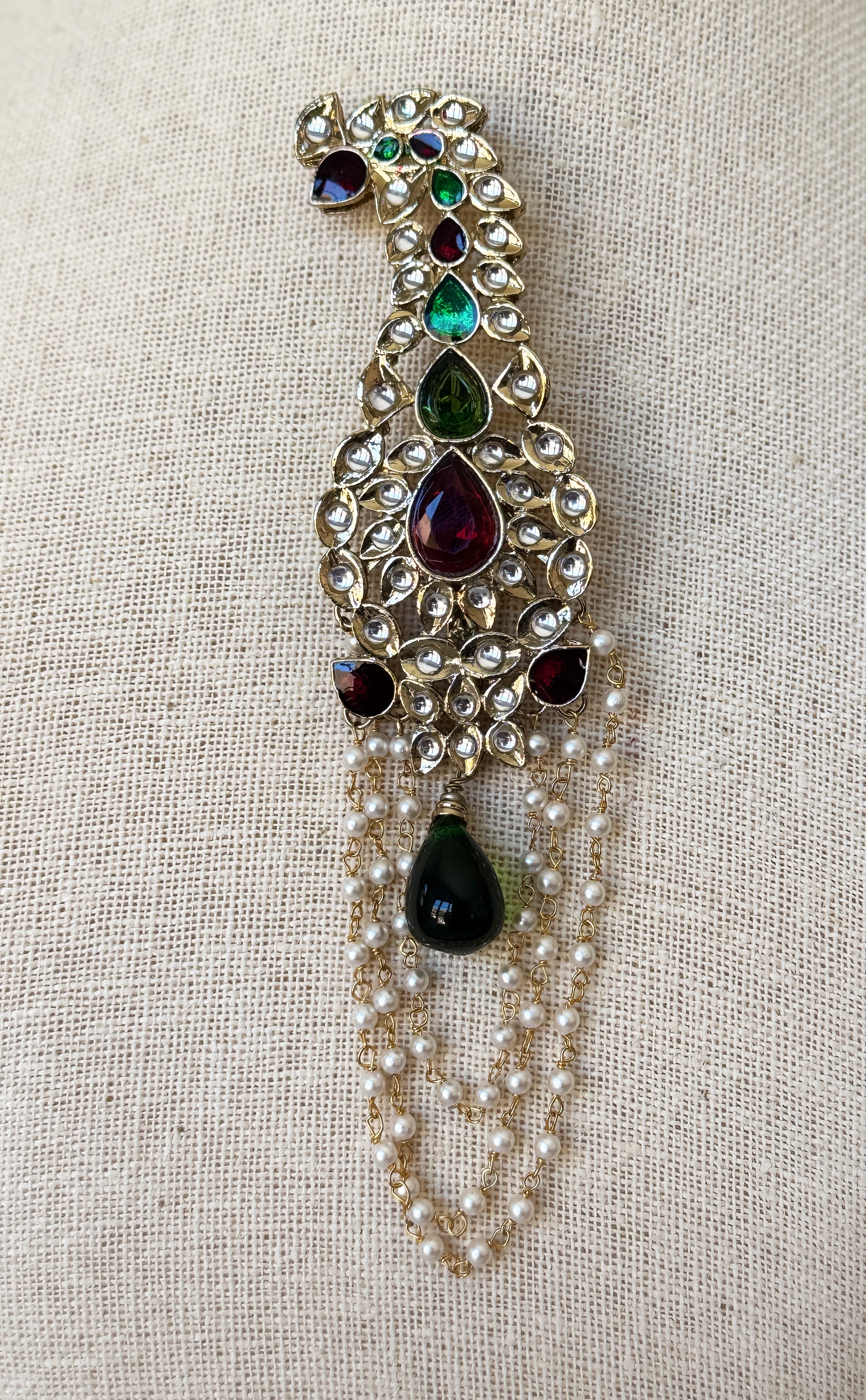 Rent this exquisite kundan and stone Kalgi to elevate your look, perfect for adding a regal touch to your turban or styling it as a statement brooch.